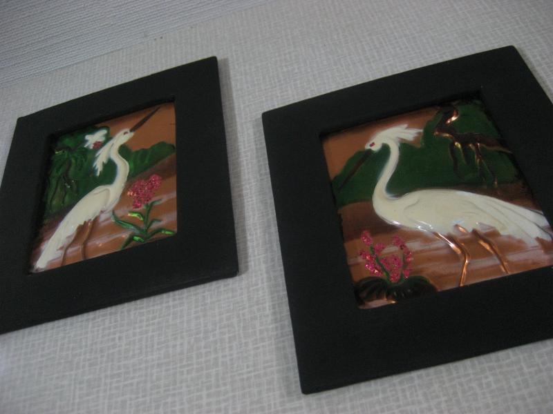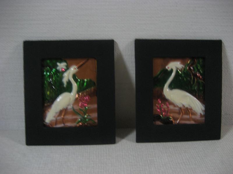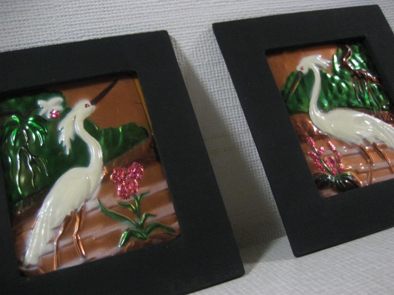 USA カリフォルニアアートの代表でパンサーとならんでよく見られる白サギのビンテージ壁掛けペア。ターナーを代表するフラミンゴと共によく見られる種類のひとつでもあります。ピクチャー部分は銅版クラフトでエンボス加工。フレームはハードペーパーメイドで、おそらくハンドペイントと思われるマットブラックカラーフレーム。裏面にメーカー及び年代プリント有。クールでGOODなビンテージウォールデコレーションピース! |