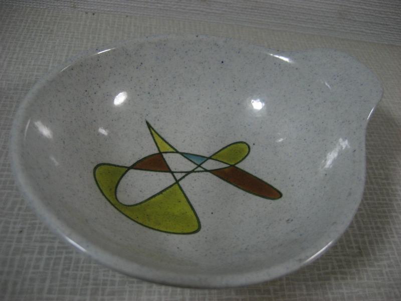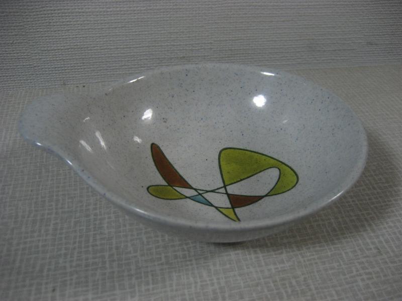 | ビンテージディッシュ / 50年代 メトロックス USA. カリフォルニア陶器の代表的なメーカー " Metlox社 " の " Poppytrail " シリーズで、タブ付ディッシュ。フリーフォームのアトミックな絵柄がクールでGOODなビンテージ50'sコレクティブルピース! |