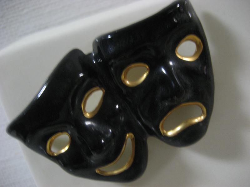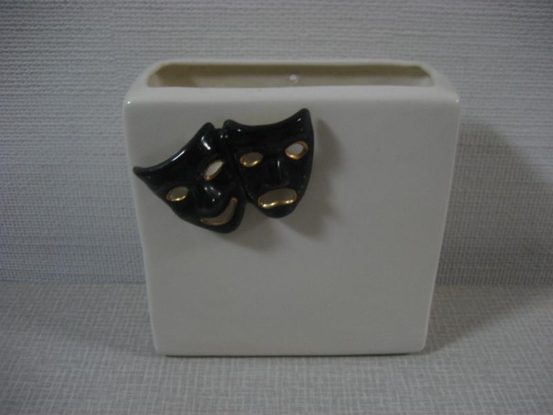 | ビンテージツーフェイスプランター / 50年代 STEWART-B-McCULLOCH CALIF, USA カリフォルニアメイドの陶器製プランター置物。片側に泣き笑いが付いたデザイン。壁掛け用ホールも開いています。フェイスはブラックにゴールドアクセント。 クールでGOODなビンテージデコレーションピース! |