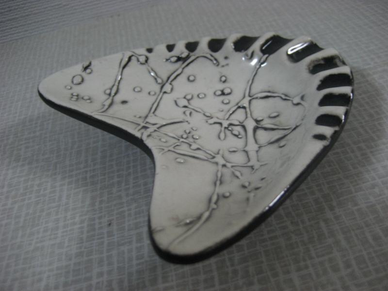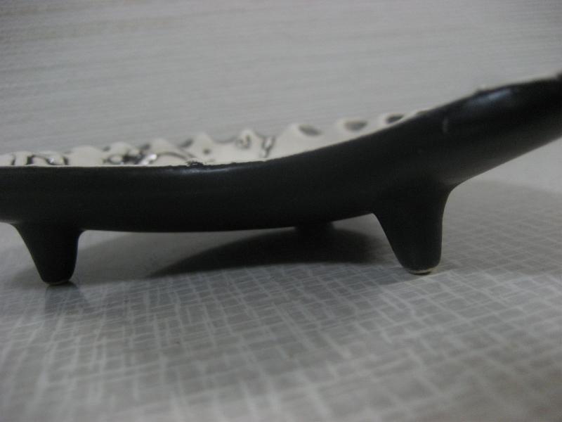 | ビンテージブーメランアッシュトレイ / 50年代 USA. アトミックなブーメランシェイプの陶器製ビンテージ灰皿です。オフホワイトカラーベースにアトミックドレーピングとブラックアクセント。ディスプレイにもおススメです。。。 クールでGOODなビンテージピース! |
