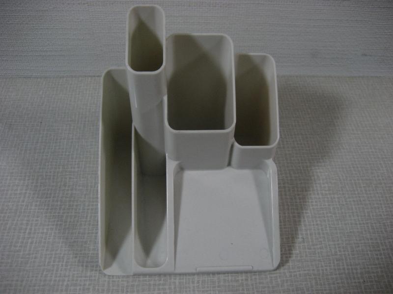 Madison WI USA. カラープラスチックメイドのデスクオーガナイザーです。ペンや定規、カッターなどなど・・・デスクまわりの整理用スタンド。例えばドライバー(ネジ回し)などの工具の整理に使うのもアリです。デザインもシンプルでモダン。クールでGOODなビンテージピース! |
