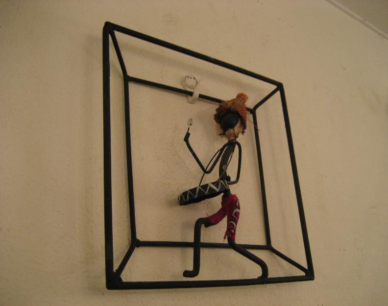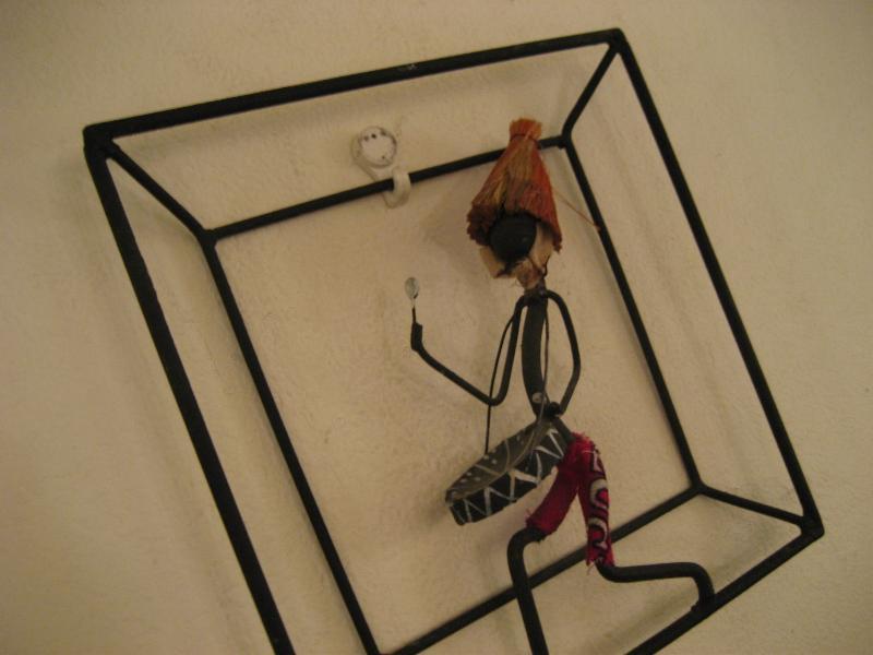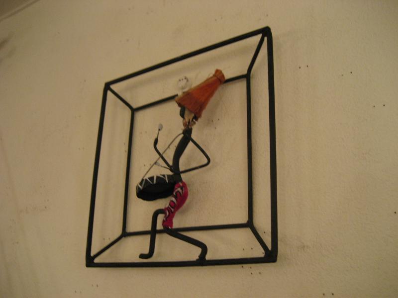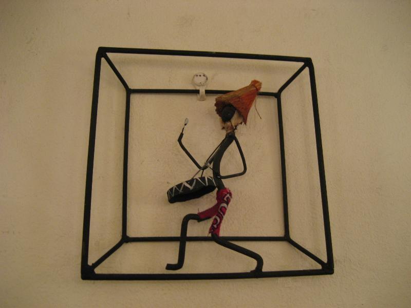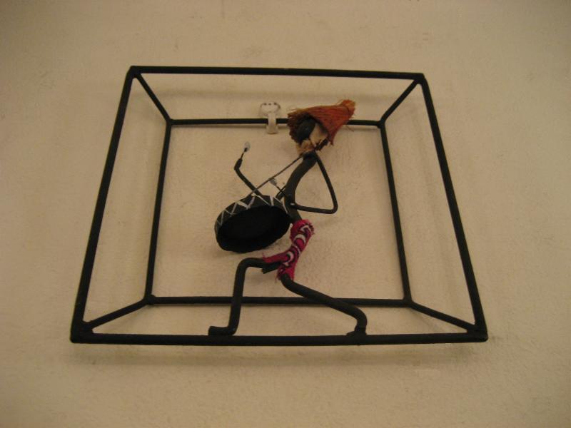 | ビンテージアイアンウォールデコ / 40-50年代 USA. ブラックワイヤーフレームのアイアンウォールデコ。カリビアンミュージシャンでしょうか・・・? 男性がドラムをたたいています。ウォールディスプレイにおススメのクールでGOODなビンテージデコレーションピース! |