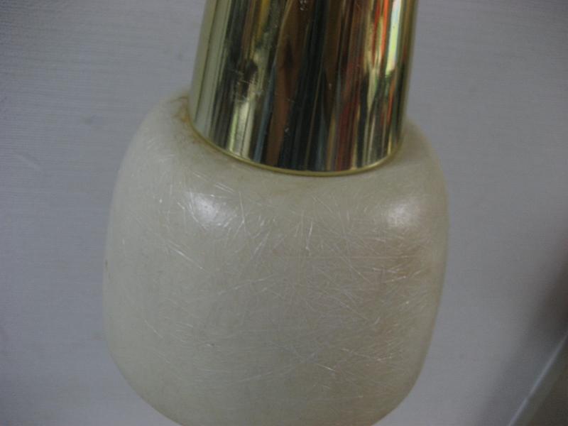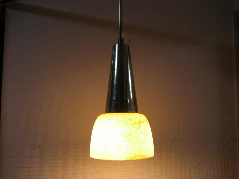 | ビンテージアトミックシーリングランプ / 50-60年代 USA ファイバーグラスとゴールドコーンバックコンビシェードのアトミックシェイプなシーリングランプ。ダイニングテーブルやカウンターの照明としておススメですし、アクセントランプとしてもGOODなビンテージミッドセンチュリーライティングピース! 電源は家庭用引っ掛けシーリングに交換済みですのですぐに設置可能です。 |