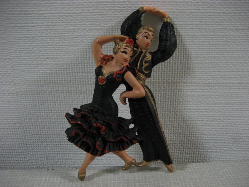 | ビンテージダンサーウォールデコ / 50-60年代 USA チョークメイドの壁掛けです。ブラックベースにレッドやゴールドアクセントのコスチュームのフラメンコダンサーのカップルでしょうか。。。クールでGOODなビンテージウォールデコレーションピース! |