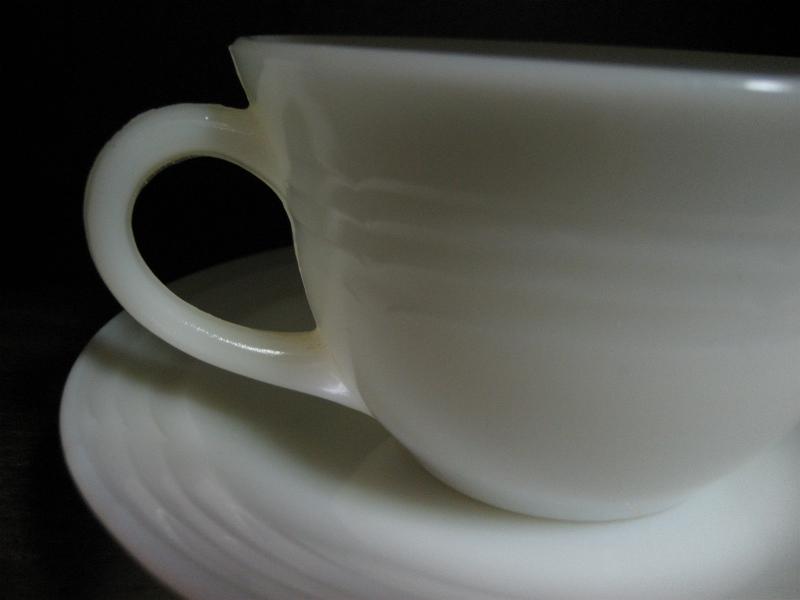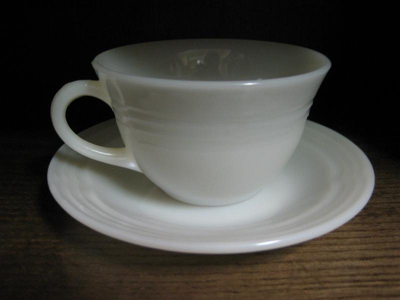 | ビンテージカップ&ソーサー / 50年代 ファイヤーキング社 MADE IN USA ファイヤーキングのレアなシリーズ"THREE BANDS"いわゆるスリーバンドのアイボリーカラー。カップサイドとソーサーエッジに入ったバンドラインが特徴のシンプルでシックなルックス。クールでGOODなビンテージテーブルピースで素敵なティータイムを! |