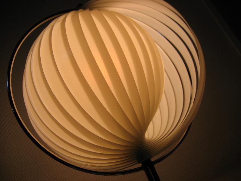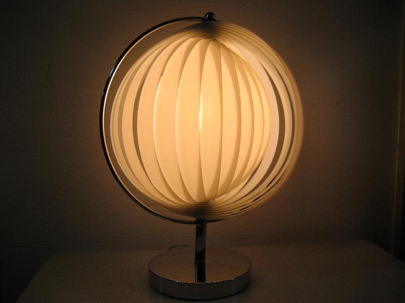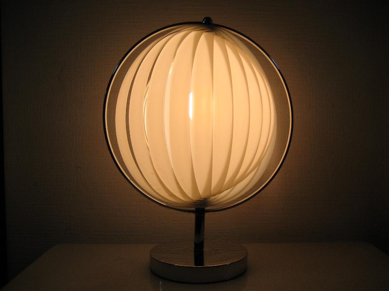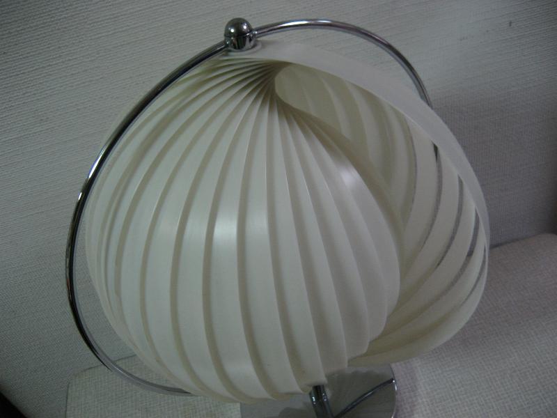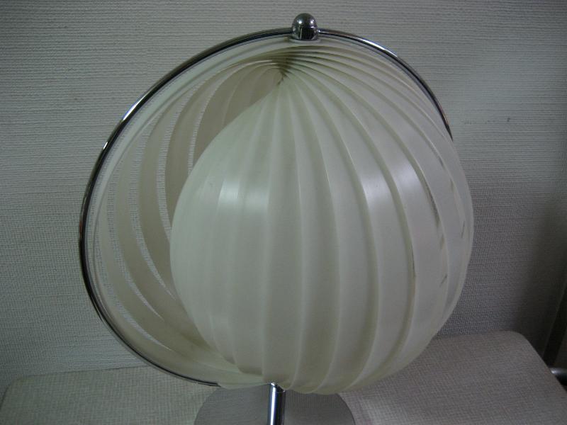 | ビンテージアトミックモダンランプ / 60-70年代 USA アトミックでスペーシーなデザインのテーブルランプ。ミッドセンチュリーを代表するデザイナー "パントン"の "ムーンランプ" にインスパイアされたフォルムのモダンライティング。プラスチックメイドのラウンドフィンを重ねた上下の軸を中心に回転させることができ、いろいろなスタイルが可能なラウンドフィンシェードデザイン。ベースとフレームはクロームタイプ。 クールでGOODなビンテージライティングピース! 電源は家庭用コンセント対応コードでスイッチはコード中間に付いています。 |