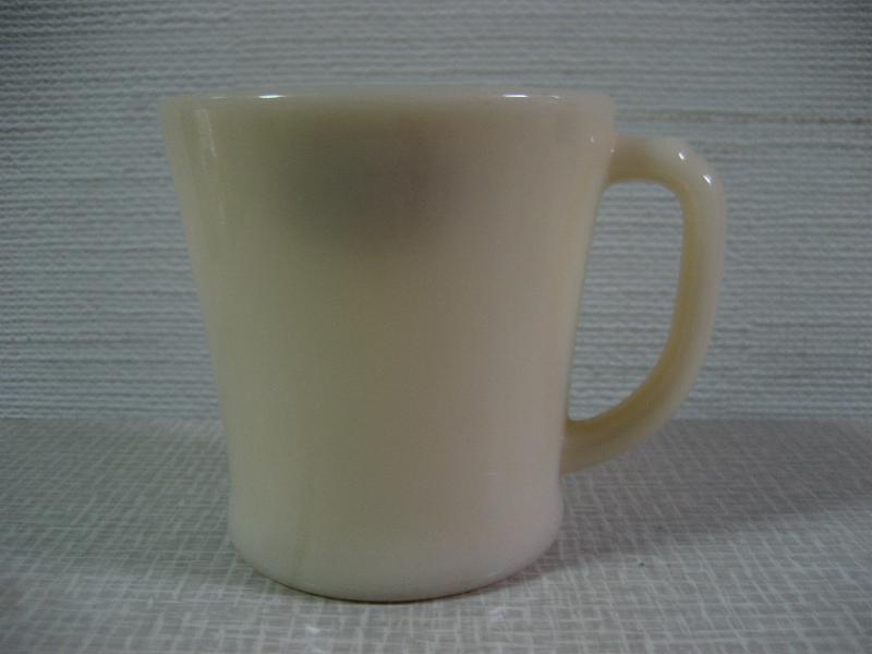 | ビンテージマグカップ / 40-50年代 Fire King / OVEN GLASS, USA. / DEAD STOCK ファイヤーキングのシェービングDハンドルマグ。 底面が平らなタイプのレアな「フラットボトム」で刻印も「OVEN GLASS」と古いタイプ。カラーはアイボリー、しかもデッドストック(オリジナルステッカー付き)。 |