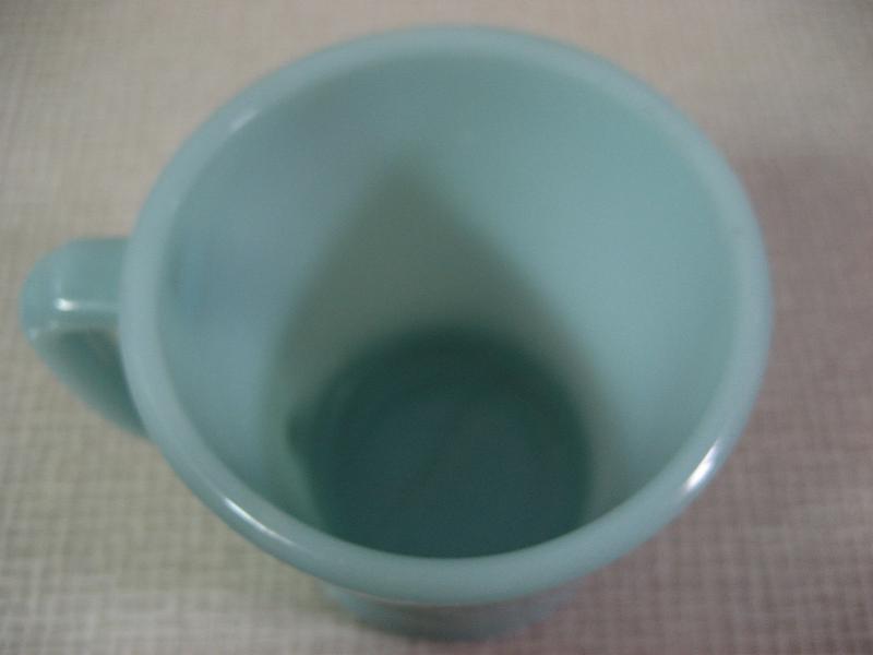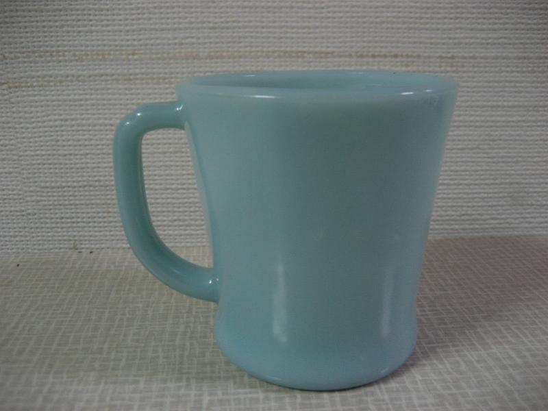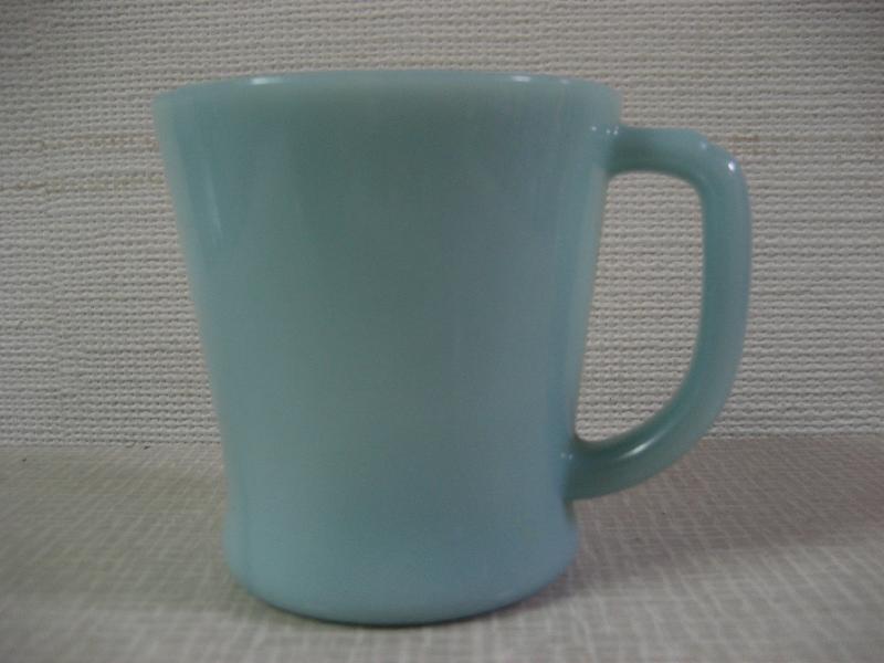 | ビンテージマグカップ / 50年代 Fire King / OVEN WARE, MADE IN USA. ファイヤーキングのシェービングDハンドルマグ。 カラーはレアなターコイズ。3年間ほどしか製造していなかった希少価値の高いカップです。 |
