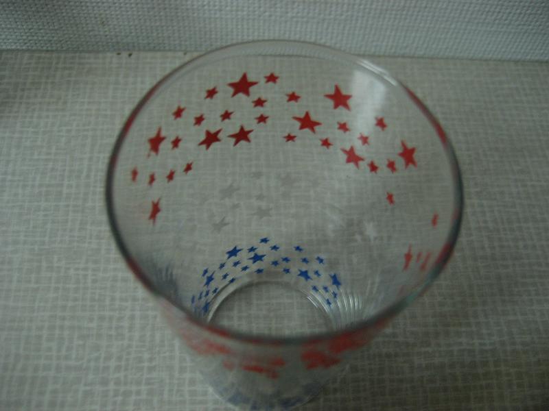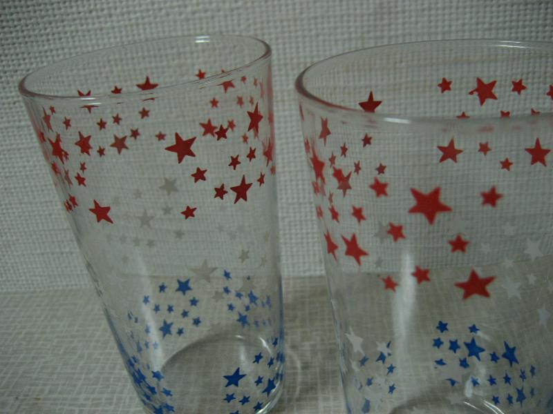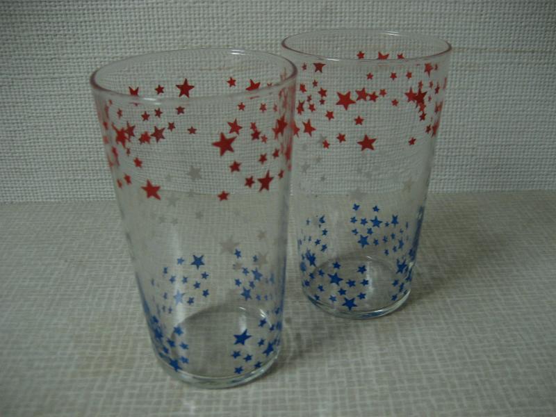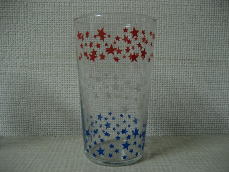 | ビンテージトリコロールスターグラス / 50-60年代 USA. 3色スタープリントのビバレッジグラス。底面の厚みが無いフラットなタイプでオールドグラス特有のフォルム。クールでGOODなビンテージテーブルピース! |