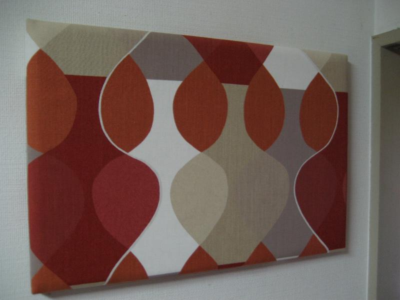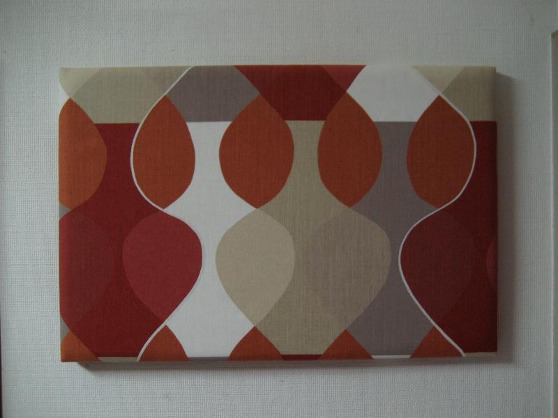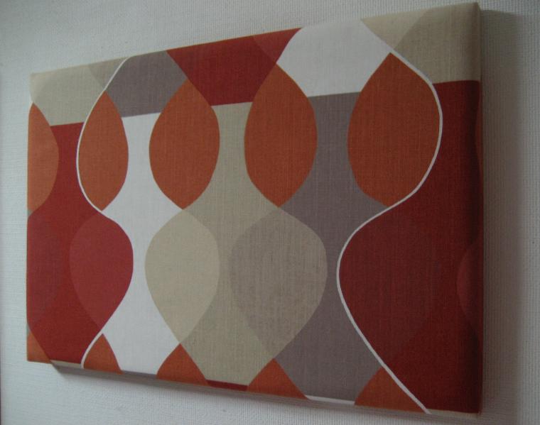 Mona bjork, in Sweden オーバルリピート柄デザインのモダンファブリックボード。ウッドフレームパネルにファブリックをセット。前面インサイドにスポンジが入っています。カラーはオレンジ・レッド・ベージュ・モカ・オフホワイトなどの色合いのプリント。すごく古いものではありませんがモダンでGOODなウォールデコレーションピース! |