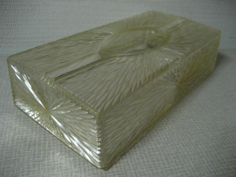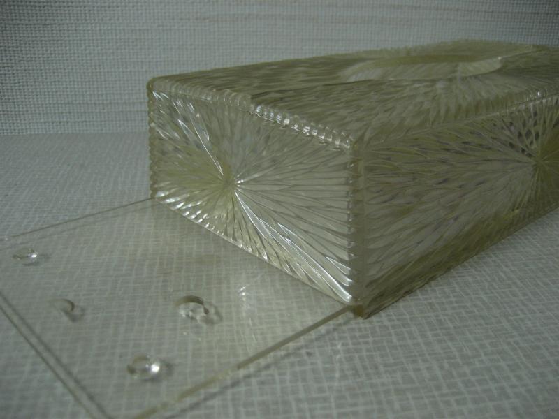 | ビンテージティッシュケース / 50年代 Celebrity INC. NEW YORK, MADE IN USA アクリルメイドのビンテージティッシュボックス。底面スライドオープンタイプで壁掛け用ホールも開いています。表面がスターバーストデザインカッティングのクールでGOODなビンテージバニティピース! |