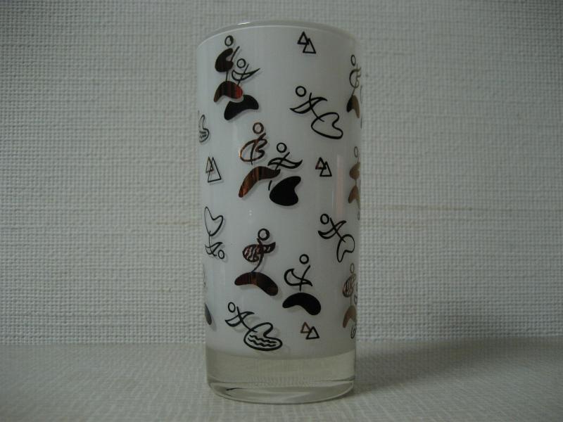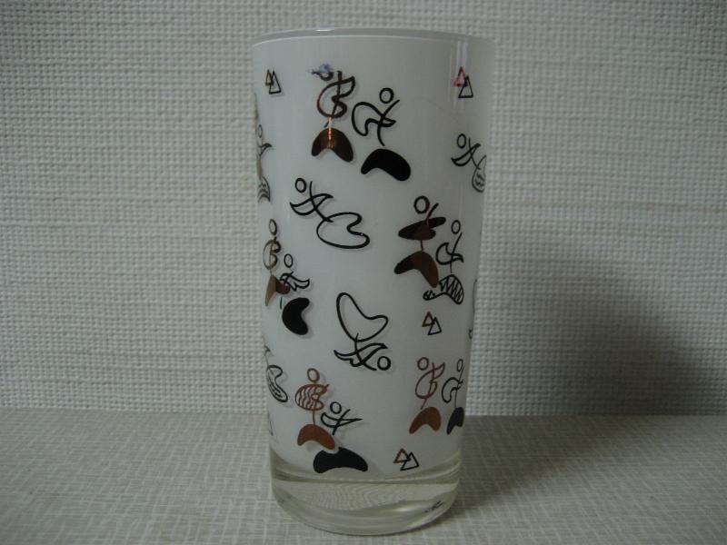 | ビンテージアトミックグラス / 50-60年代 USA. ブーメラン柄のビバレッジグラス。フロステッドタイプのグラスでブラックカラーのアトミックブーメランプリント。クールでGOODなビンテージコレクティブルピース! |