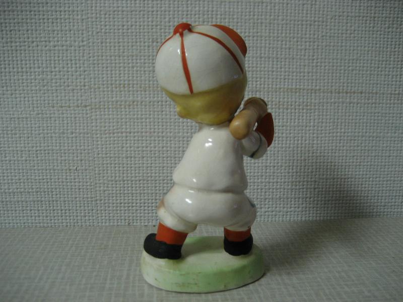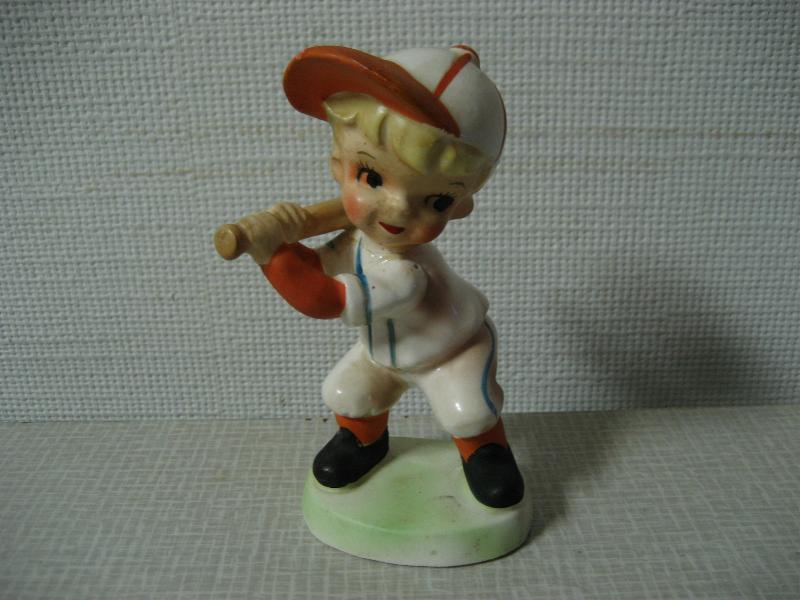 | ビンテージベースボールプレーヤーキッズドール / 50-60年代 USA / JAPAN MADE キッズベースボールプレーヤーの陶器製置物。野球のユニフォームを着てバットを持ち構えているポーズ。キュートでGOODなビンテージコレクティブルピース! |