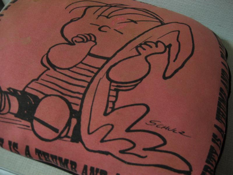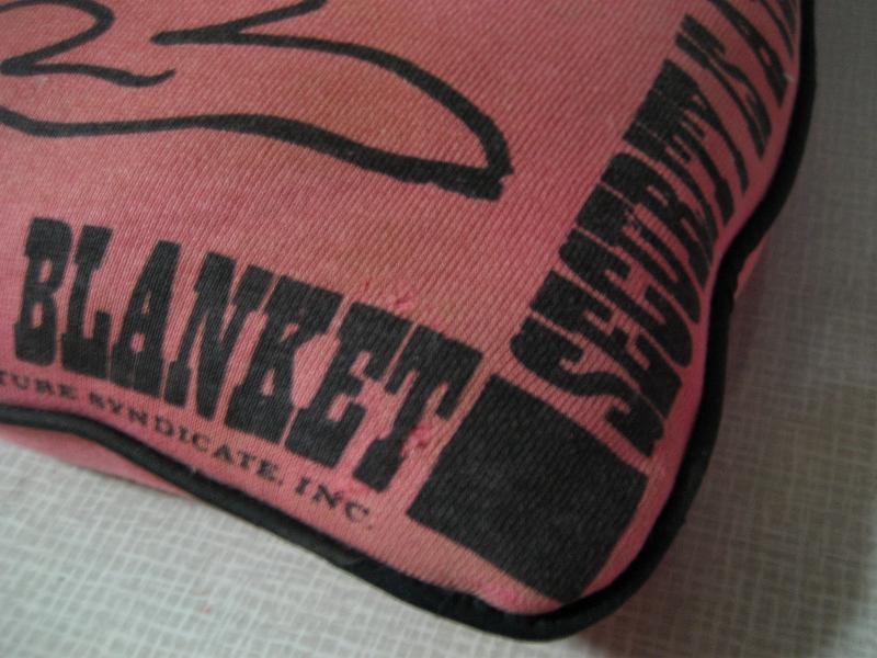 SYNDICATE INC. USA スヌーピーのビンテージスウェットと同じスウェット地で作られた超レアなピロークッション。スウェットと同じようにピーナッツギャングのキャラクターLinusがセンターに、まわりにはメッセージがそれぞれプリントされています。裏面は無地で側面はパイピングフィニッシュ。もちろんシュルツのサイン入り。こちらのキャラクターはライナスでブランケットを持っているのが特徴ですね。。。 クール&キュートでGOODなビンテージコレクティブルピース! |