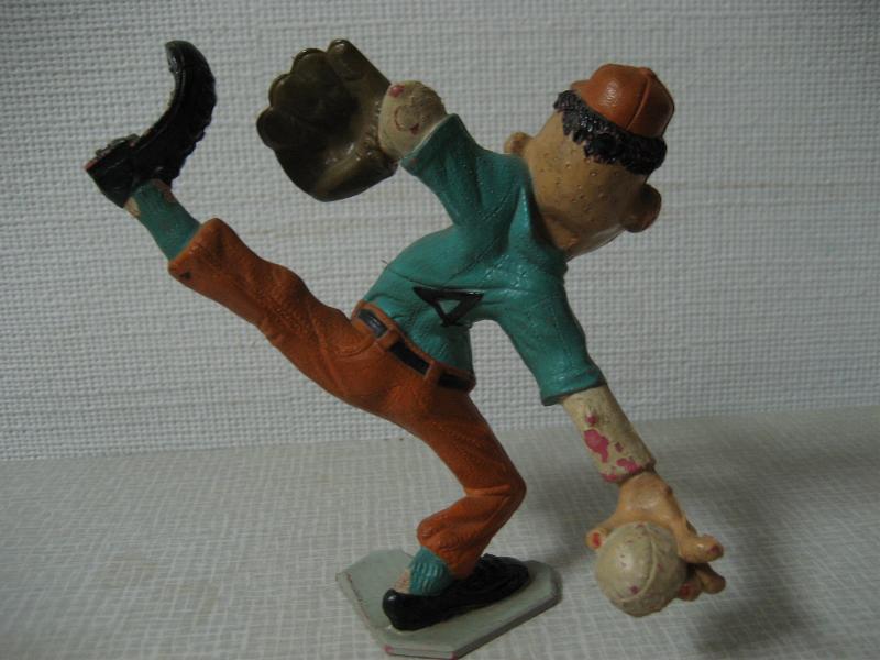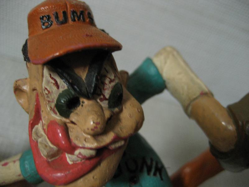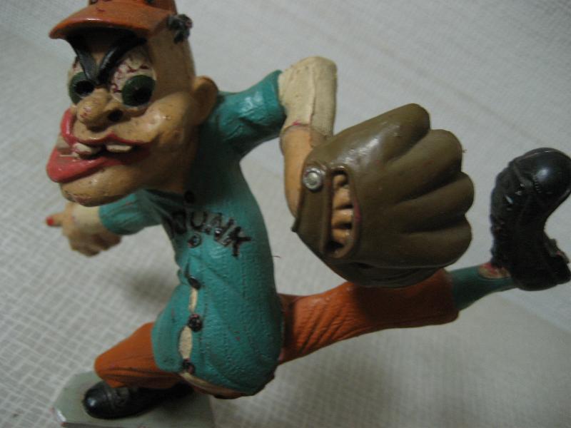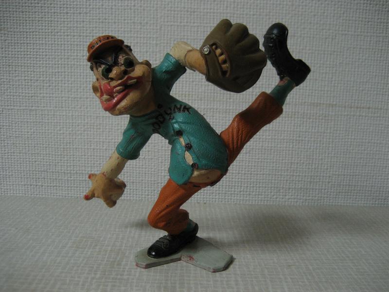 | ビンテージビートニクデコ / 60年代 LOUIS MARX & CO, INC. USA / "NUTTY MADS"シリーズ 60年代のビートニクスタイル、プラスチックメイドのベースボールプレーヤー置物。かなりファンキー?なピッチャーで、帽子に"BUMS"(浮浪者)、胸に"PODUNK"(田舎町)となかなかシュールな感じが良いです。。。 クールでGOODなビンテージコレクティブルピース! ■LOUIS MARX & CO, INC. ( 1919 - 1978 ) アメリカの玩具メーカー |