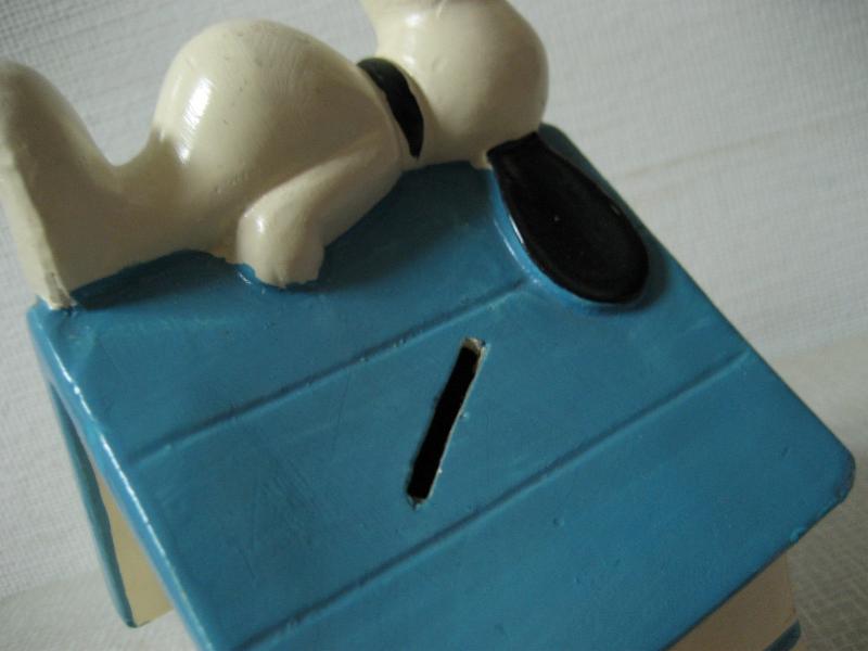 | ビンテージスヌーピーバンク / 70-80年代 USA 紙粘土(ペーパークレイ)ハンドメイドのスヌーピー貯金箱。スヌーピーが自分の犬小屋の屋根で寝ているポーズ。"SNOOPY"の手書きの文字がなんとも言えずとってもカワイイです。。。 貯金箱ですが中身を取り出す穴がないのでご注意を・・・ キュートでGOODなビンテージコレクティブルピース! |
