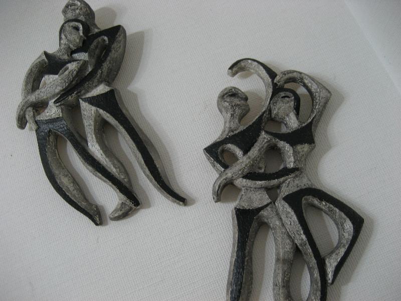 | ビンテージペアウォールデコ / 70年代 ©1974 MILLER STUDIO INC. USA. ハードプラスチック成型のビンテージ壁掛けセット。カラーはフェイスがブラックでベースはグレー系。男女ペアのダンサーをベースにしたクールでGOODなビンテージウォールデコレーションピース! |