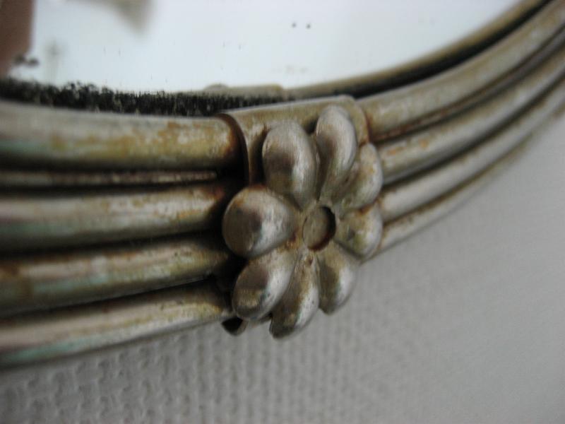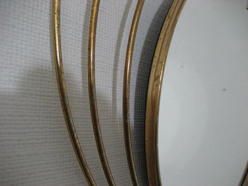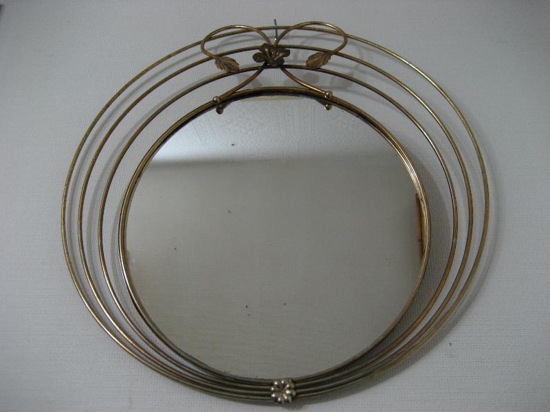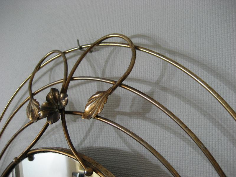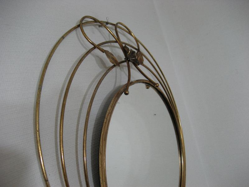 | ビンテージアトミックウォールミラー / 50-60年代 USA. メタルワイヤー3連リングフレームで変形ラウンドシェイプの壁掛けタイプミラー。トップにリーフ&フラワーデコ、ボトムにフラワーデコ。玄関やお部屋のアクセント、もちろんメイクアップ用としてもおススメです。。。 クールGOODなビンテージウォールデコレーションピース! |