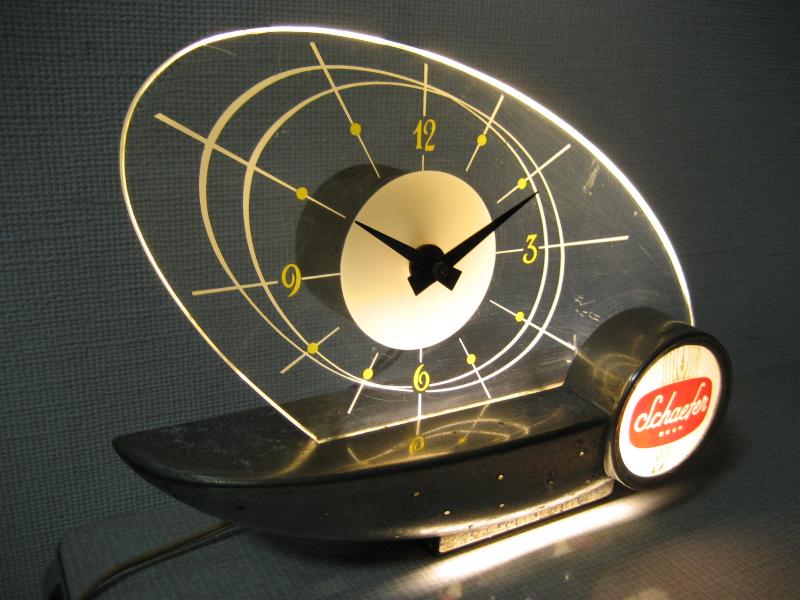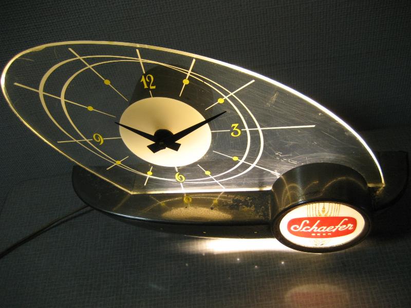 | ビンテージライトアップサインクロック / 50年代 Schaefer Beer, USA. "Schaefer Beer"ビールメーカーのレアな広告用BARランプクロック。リカーショップやBARなどのレジスターサイドなどのアドクロックです。メタルベースにブーメランシェイプの文字盤で、ライトアップしたときの文字盤に広がる明かりが最高です! クールでGOODなビンテージミッドセンチュリーピース! 電源は家庭用コンセント対応コード。ライトアップ用スイッチはベース裏面にツマミがあり、少し長押しで点灯、PULLで消灯。 ■時計ムーブメントについて■ 裏側ムーブメントケースに入らないためと、外観の雰囲気が変わってしまうのであえて交換しておりません。そのため50Hz地域(主に東日本)では時間が正確ではありませんのでご了承ください。 |