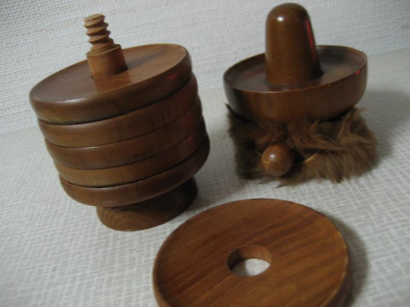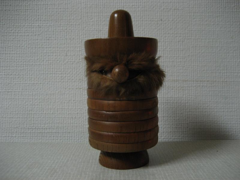 | ビンテージドリンクコースターセット / 60年代 USA モダンウッドメイドのドリンクコースターセット。チーク材のような色違いで、コースターが人形フォルムに収まっています。メキシカンスタイルの頭部が外れるようになっています。ディスプレイにもオススメ! クールでGOODなビンテージテーブルピース! |
