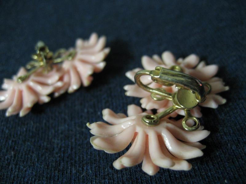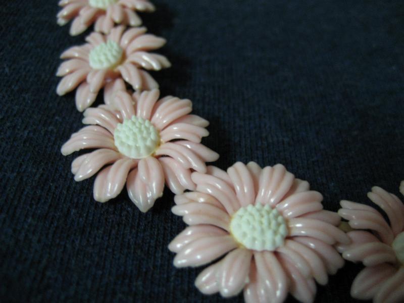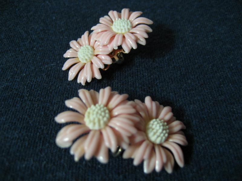 | ビンテージアクセサリーセット / 50年代 USA フラワーデザインのネックレスとイヤリングのセット。アクリルメイドでネックレスはフラワーと同素材ビーズ、イヤリングは2連フラワーデザイン。カラーはピンクとホワイトのコンビネーションがとってもきれい。。。キュートでGOODなビンテージアクセサリー! |