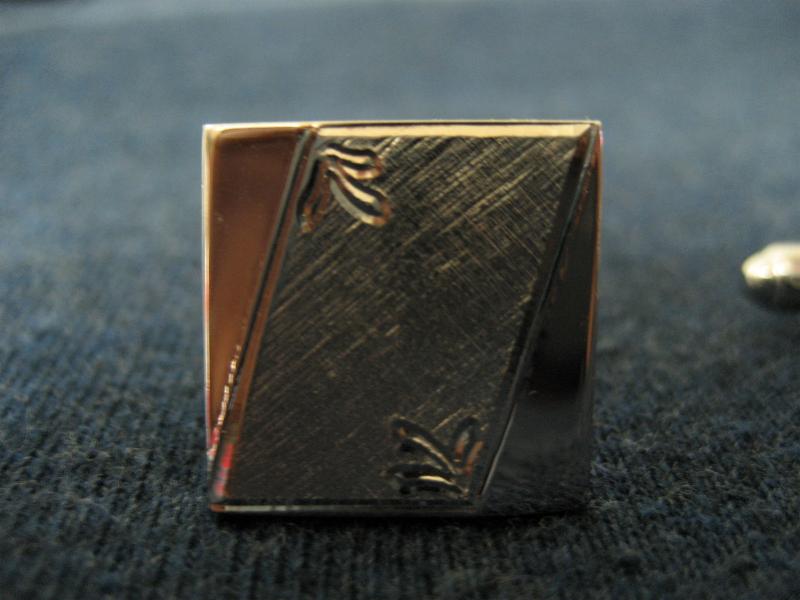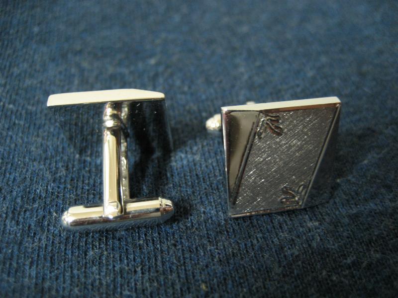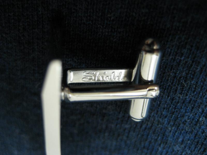 | ビンテージアクセサリーセット / 50-60年代 Shields, USA 米国シールズ社のカフスボタンとタイバーセット。それぞれのトップデザインはシルバーメタルで表面が違うパターンの切り替え2ブロックフェイス。クールでGOODなビンテージアクセサリーピース! |