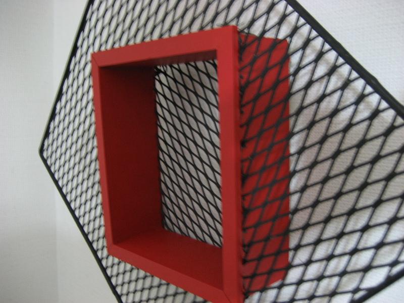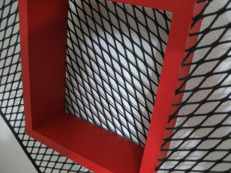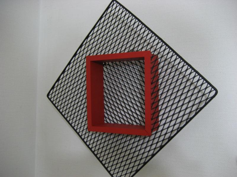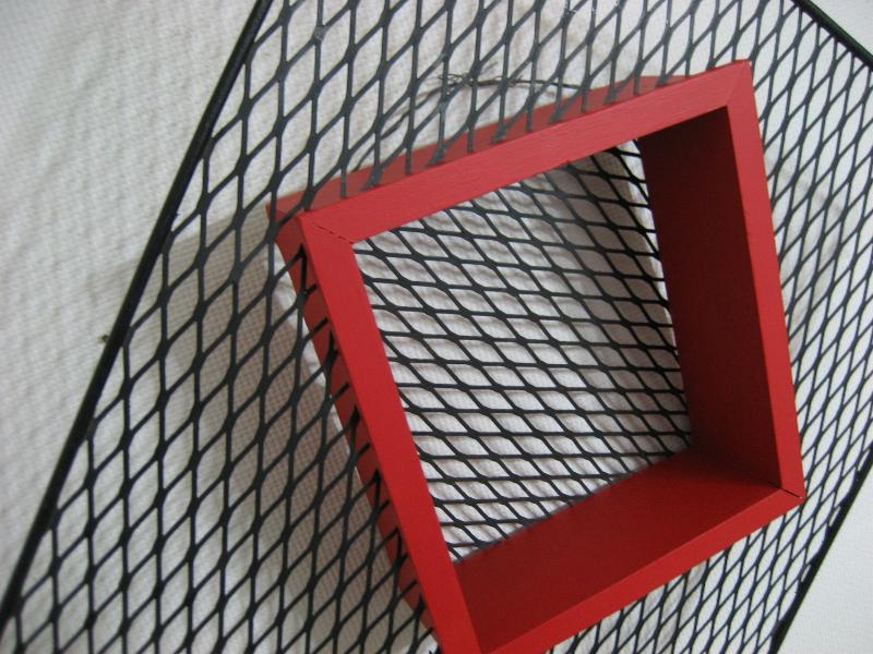 | ビンテージウォールシェルフ / 50年代 USA. アトミックなアイアンメッシュフレームにウッドシェルフのビンテージ壁掛け飾り棚(シャドウボックス)。ちょっとした壁スペースなどにクールでGOODなビンテージウォールデコピース! |