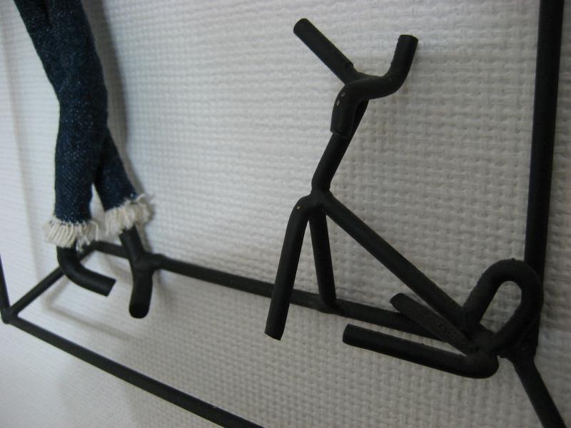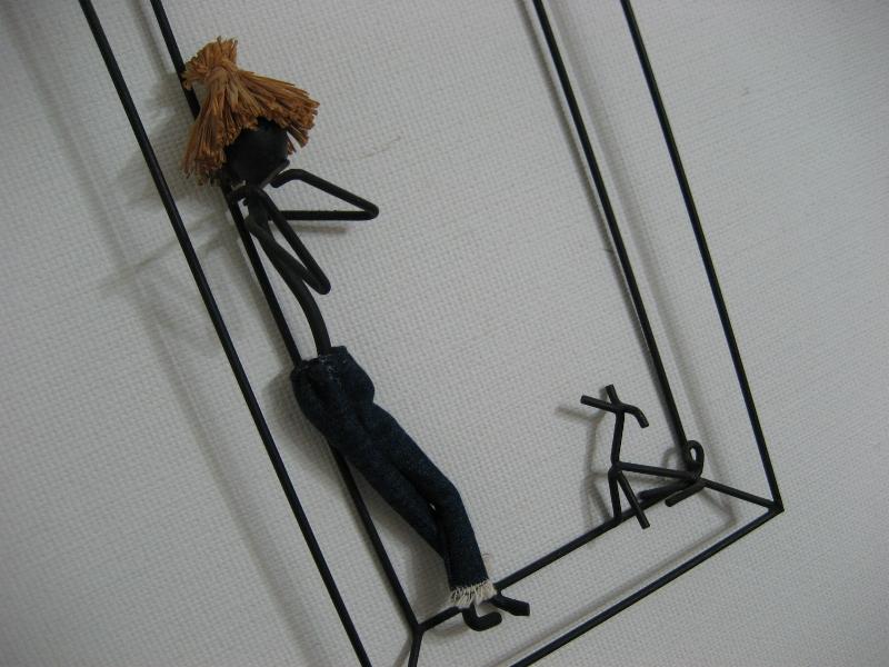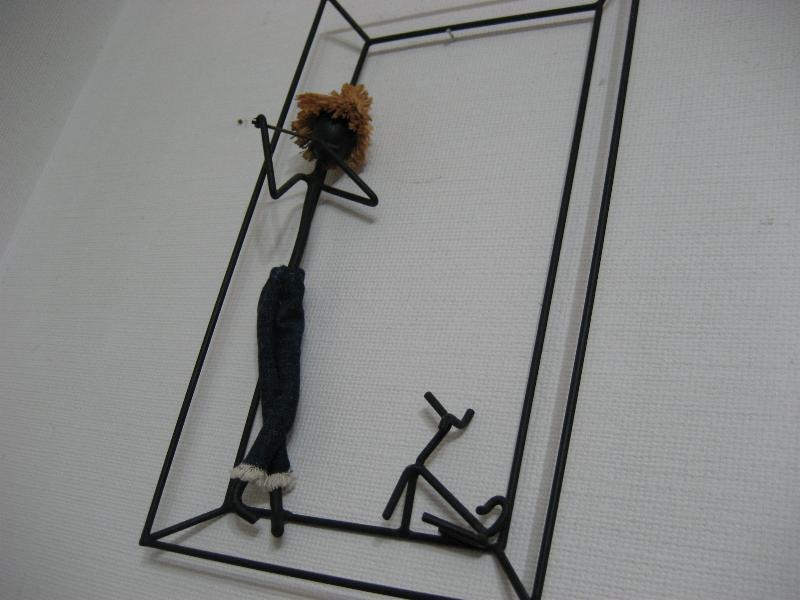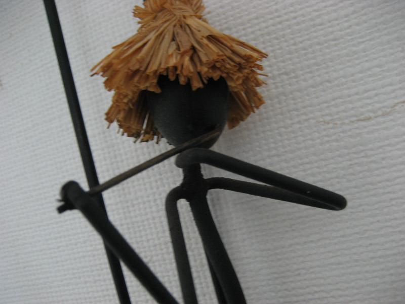 | ビンテージワイヤーフレームウォールデコ / 40-50年代 USA. レトロなアイアンウォールデコ。ブラックアイアンフレームに笛を吹いている男性の足元にイヌがいるシーン。ウォールディスプレイにGOODなビンテージデコレーションピース! |