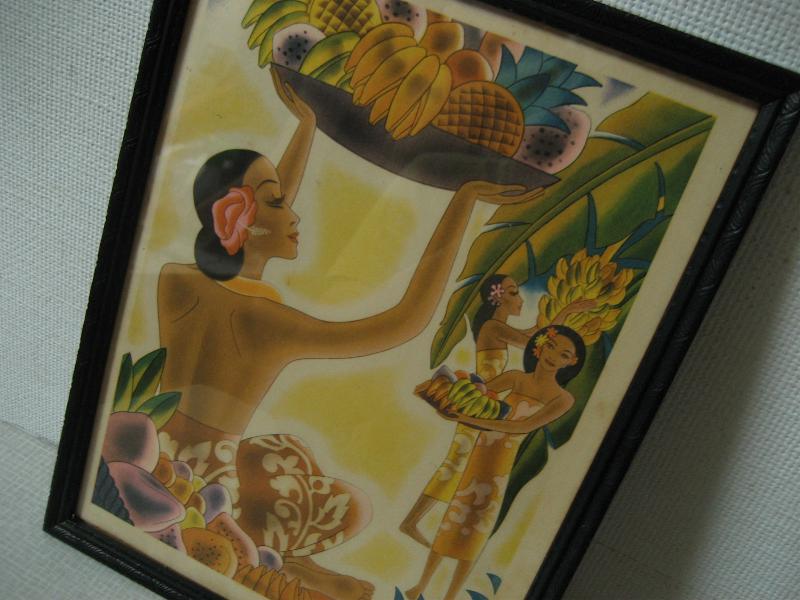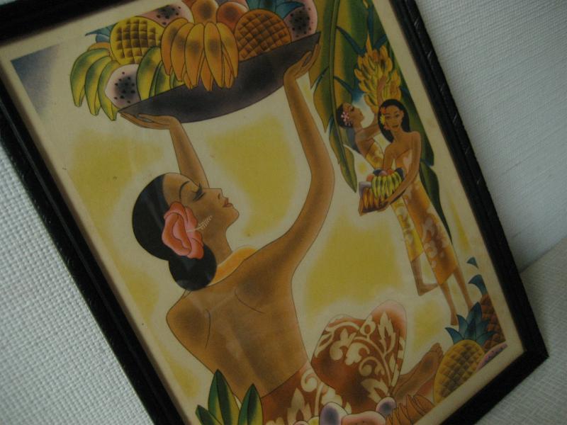 | ビンテージハワイアンメニューフレームデコ / 40-50年代 USA. マッキントッシュのハワイアンメニュービンテージフレーム入り壁掛け。額は古い細フレームでブラックペイント。クールでGOODなビンテージウォールピース! |
