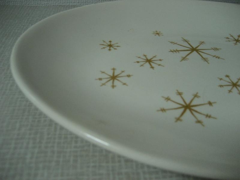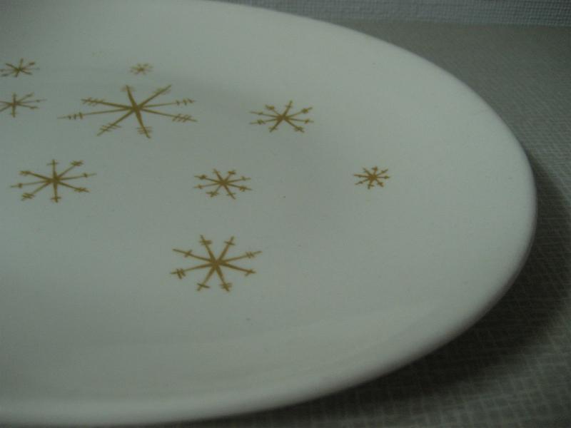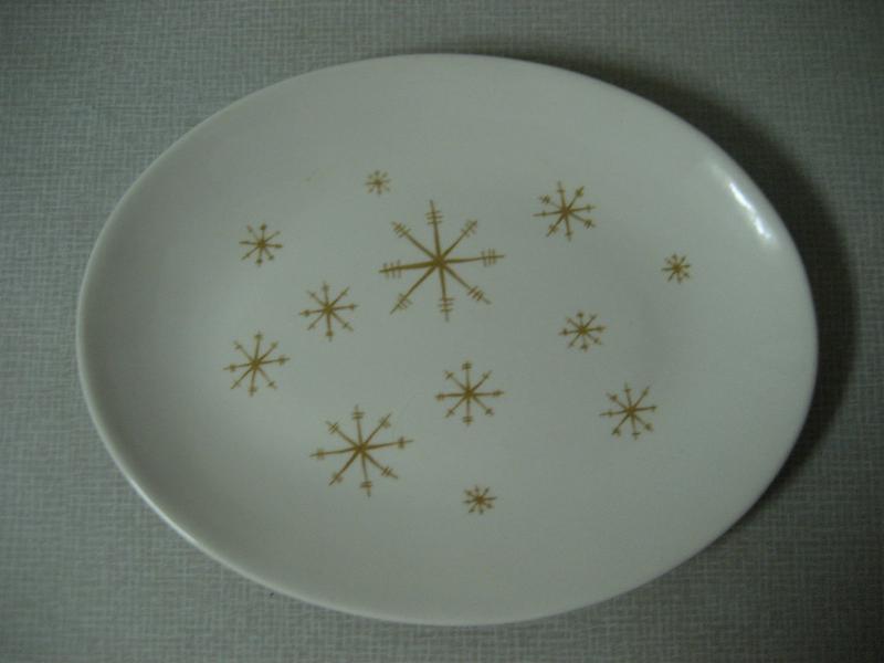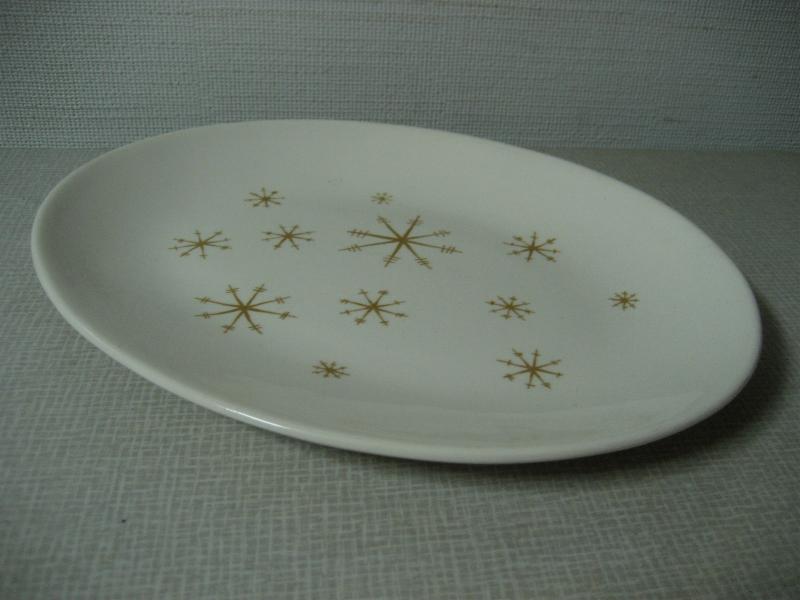 | ビンテージテーブルウェア / 50年代 ロイヤルチャイナ社 MADE IN USA. 1940〜1955 ファイヤーキングと同じオハイオ州の陶器メーカー、Royal China社を代表する "スターグロウ" シリーズでスターバースト柄のオーバル(楕円形)ラージプレート。クールでGOODなビンテージテーブルピース! ◆◇◆バックスタンプについて◆◇◆ こちらの商品はバックスタンプなしです |