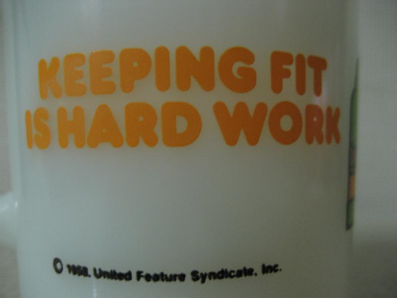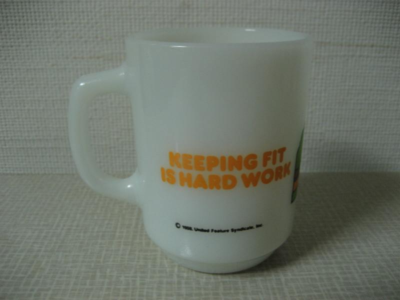 | ビンテージファイヤーキングマグカップ / スヌーピーシリーズ "KEEPING FIT IS HARD WORK" スヌーピーがジョギングしているスポーツシリーズのマグです。 |