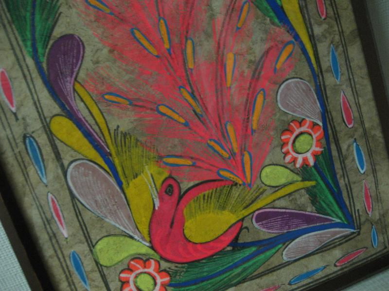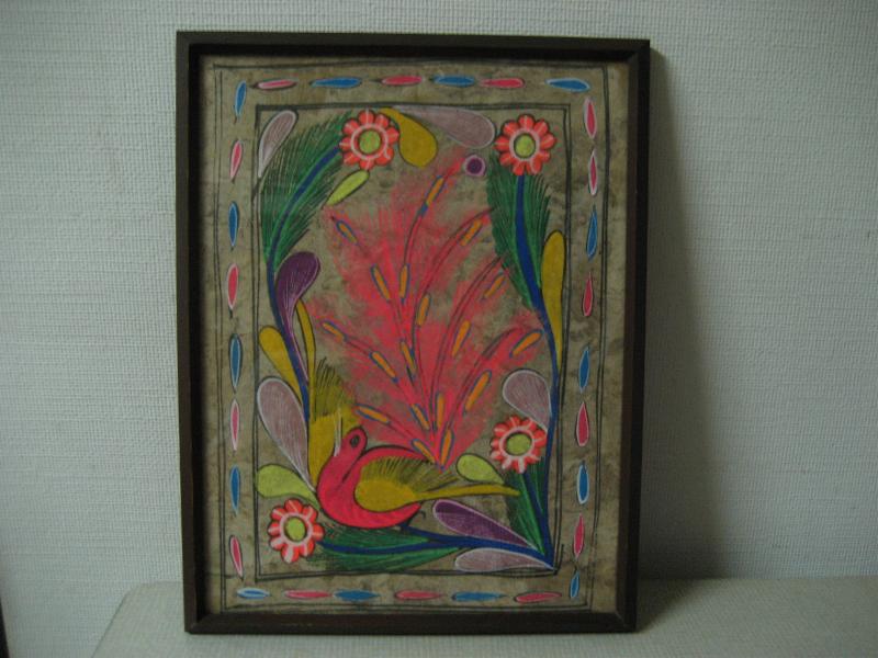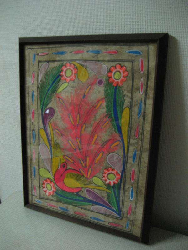 | ビンテージモダンアートフレーム / 70-80年代 USA カラフルな色彩の花や鳥をモチーフにしたビンテージフレームアート。ウッドフレームにフロントガラスカバー。クールでGOODなビンテージウォールピース! |
