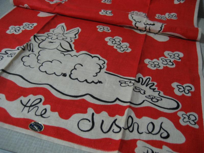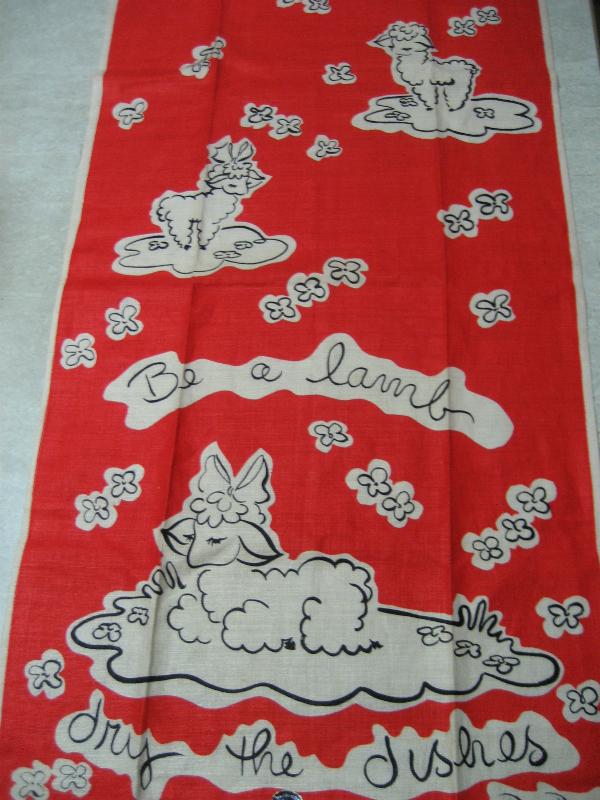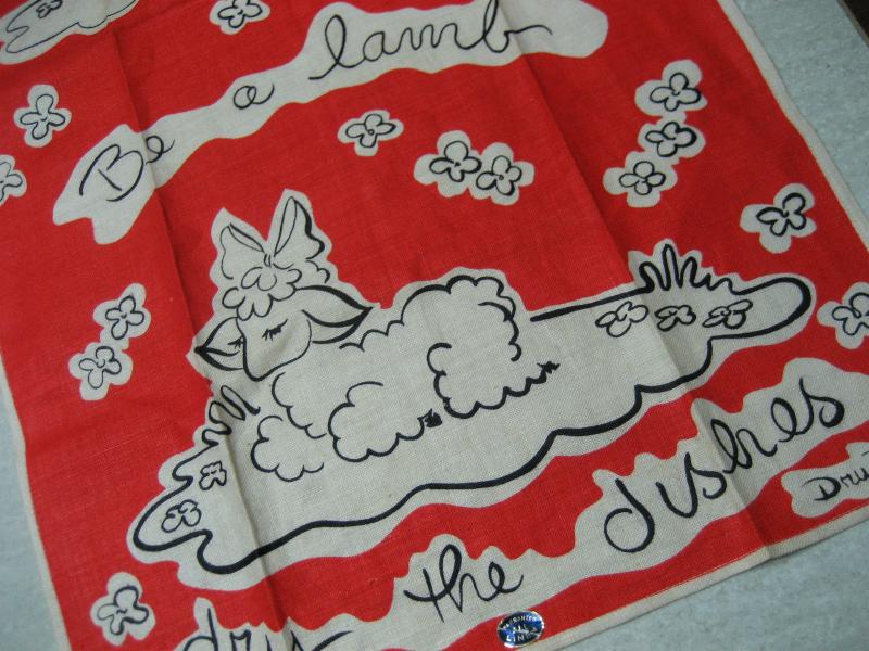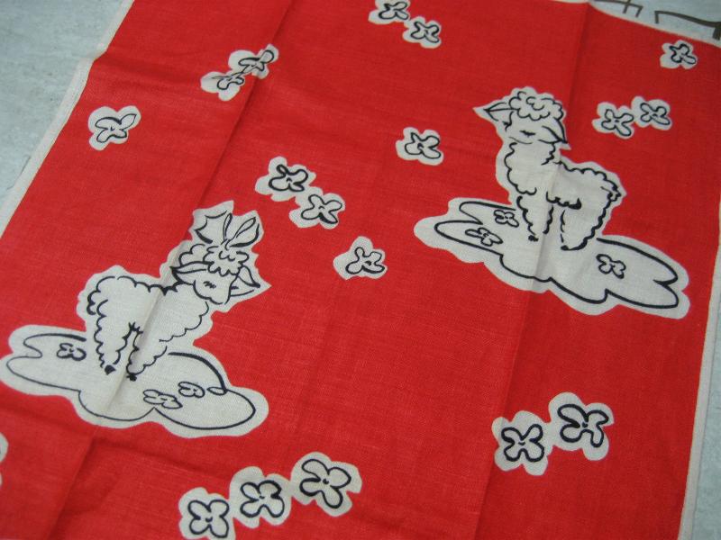 | ビンテージキッチンファブリック / 50年代 USA, Dead Stock. デッドストックのキッチンリネンファブリック。キュートなヒツジプリント。オリジナルステッカー付き。クールでGOODなビンテージコレクティブルピース! |