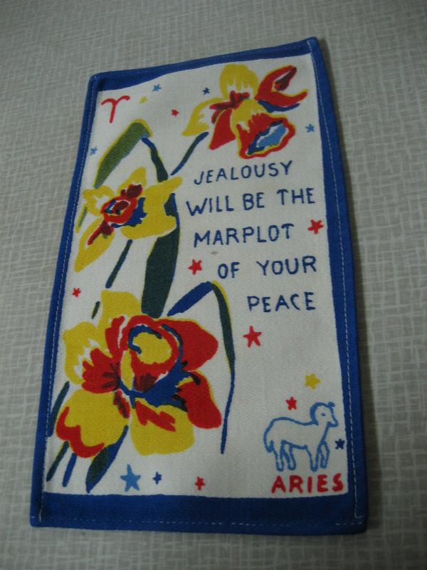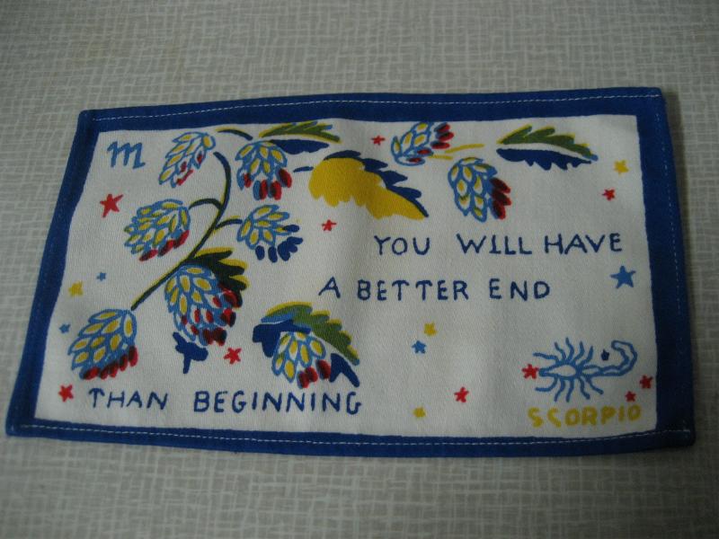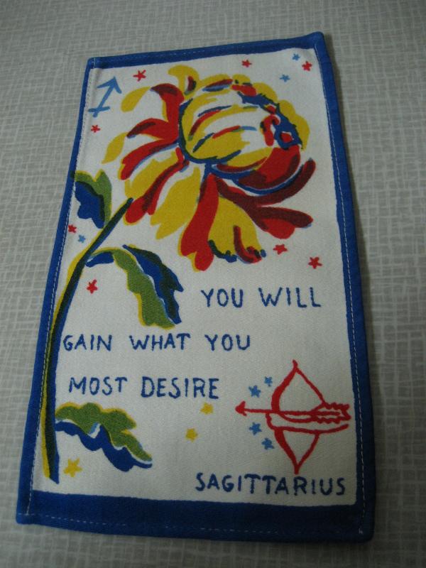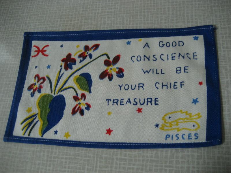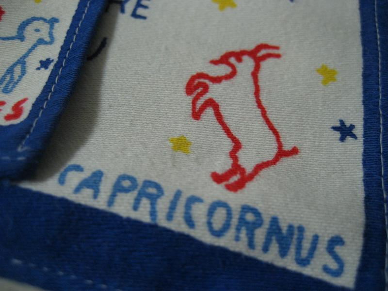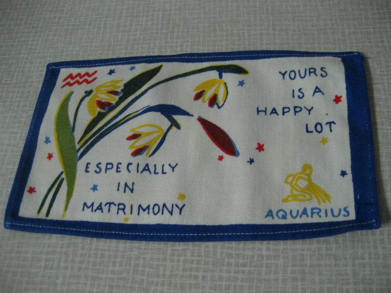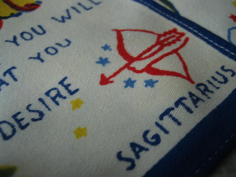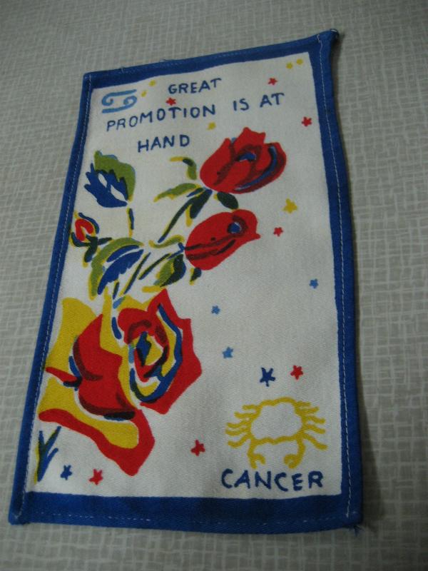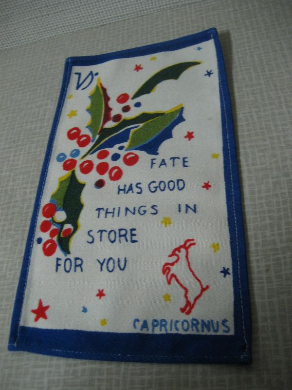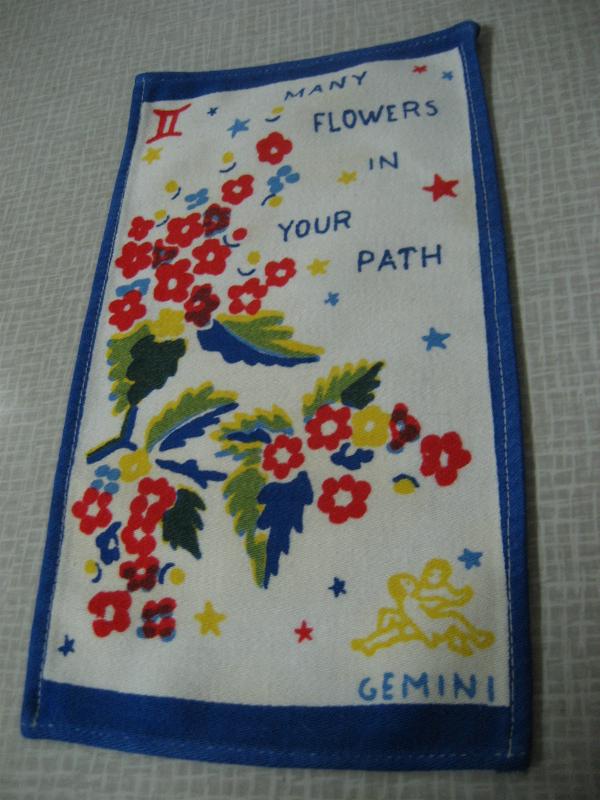 | ビンテージキッチンファブリック / 50-60年代 USA. オールドキッチンファブリック。それぞれフラワー&メッセージと星座プリント入り。キュートでGOODなビンテージコレクティブルピース!クリアなフォトフレームにいれて飾ってもGOOD! |