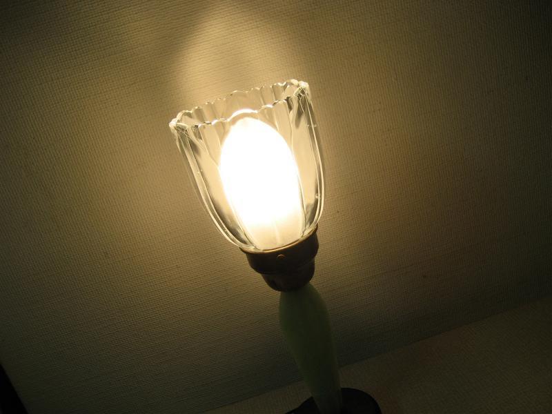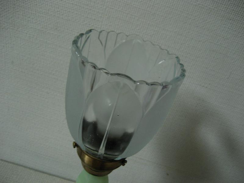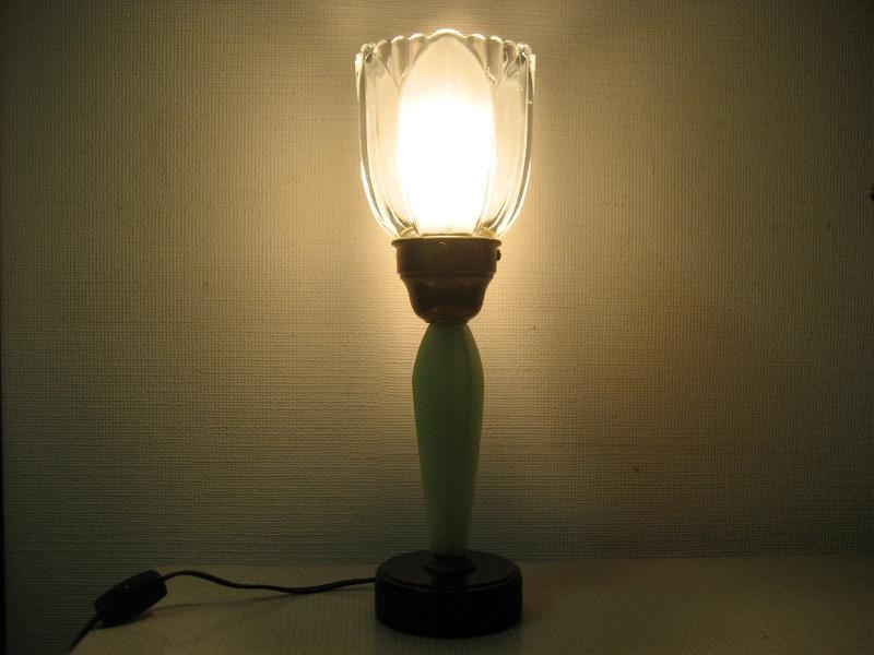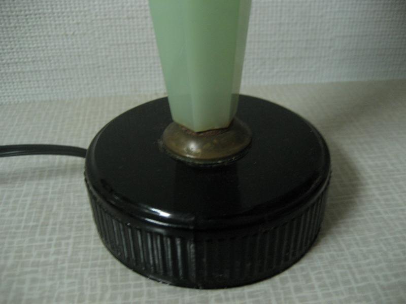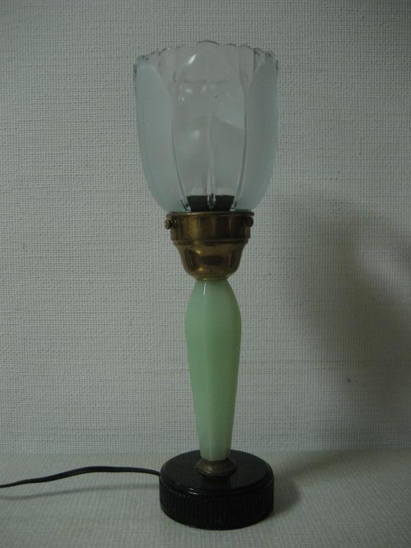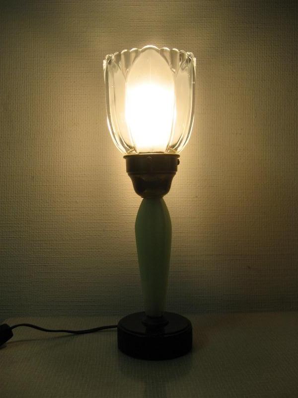 | ビンテージテーブルランプ / 50-60年代 USA. ガラスシェードのビンテージテーブルランプ。シェードはガラスメイドでフラワーデザイン、ベースはファイヤーキングのジェードを思わせるミルクガラスタイプ。クールでGOODなビンテージライティングピース! 電源は家庭用コンセント対応コードで、スイッチはコードに付いています。 |