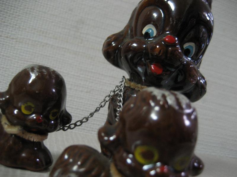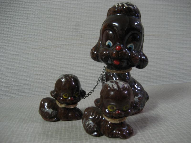 | ビンテージプードルファミリーデコ / 50年代 USA. JAPAN MADE 陶器製のプードル親子。ママのネックからチェーンで繋いだ子供達がキュートです。レトロでGOODなビンテージデコレーションピース! |