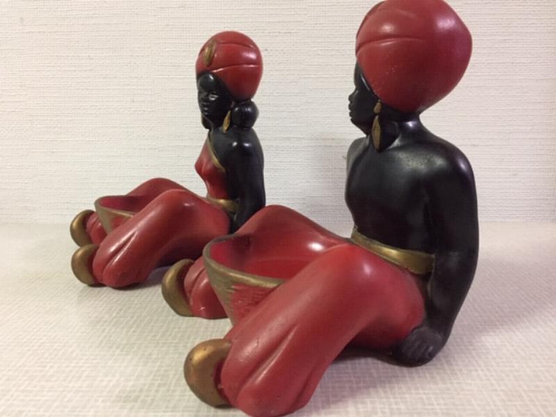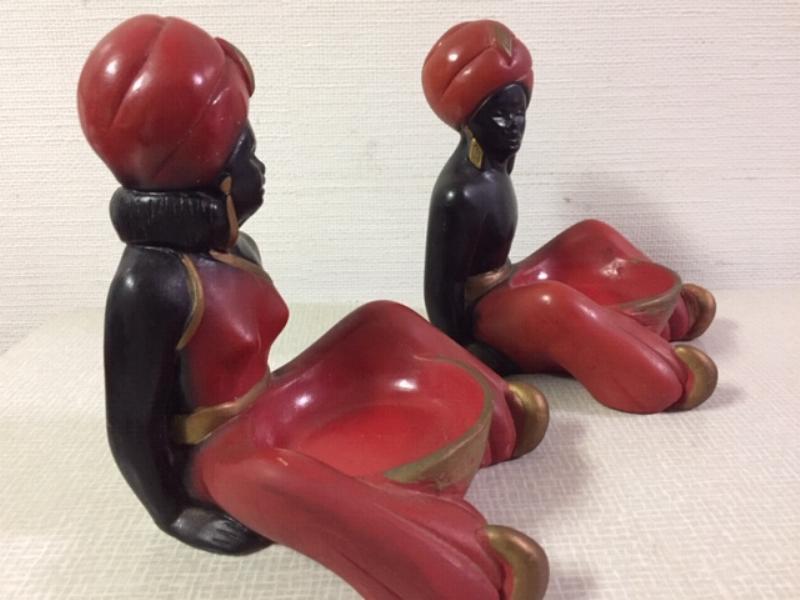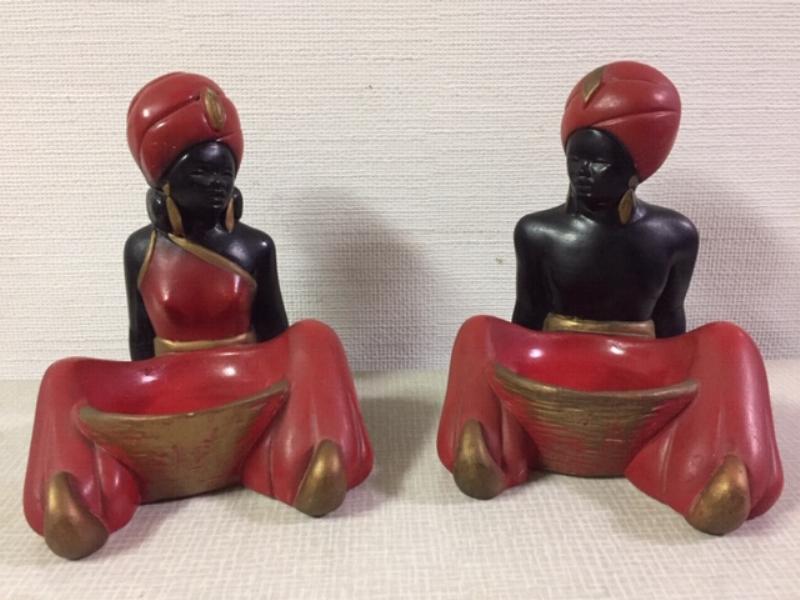| ビンテージペアオリエンタルデコ / 50-60年代 USA. チョークメイドのオールドペア置物です。フロントに小物入れスペースがあります。赤とゴールドのオリエンタルコスチューム。クールでGOODなビンテージピース! |