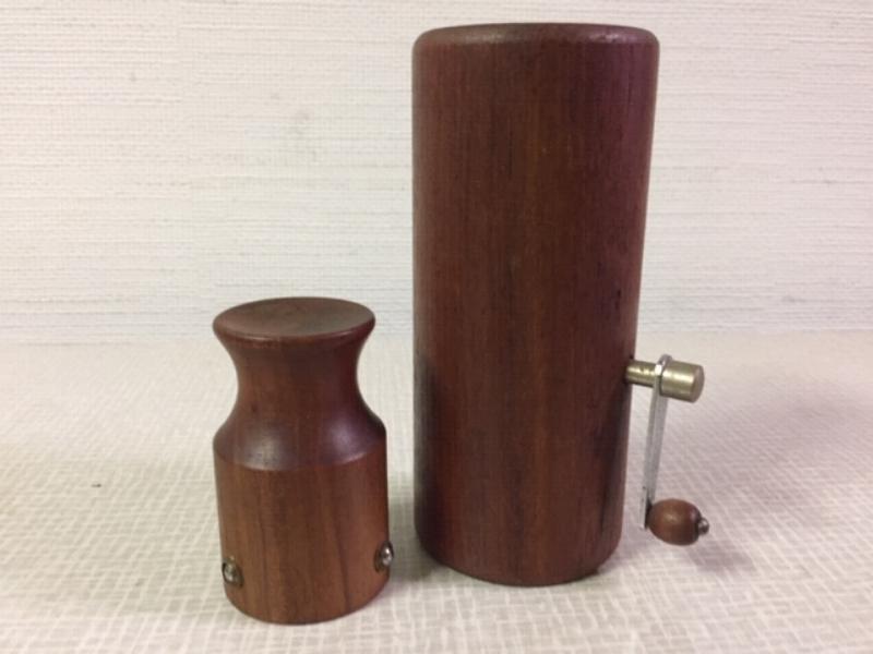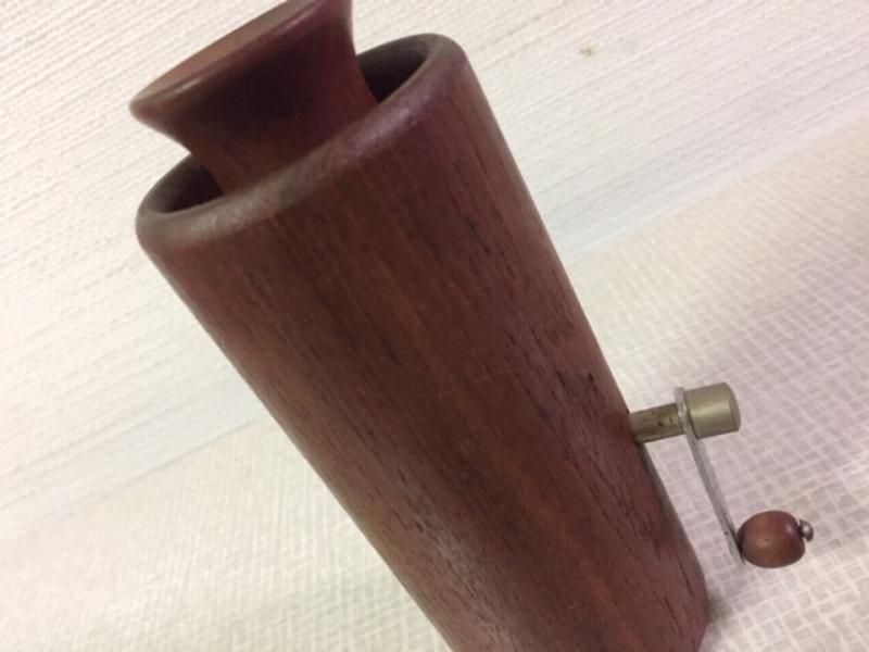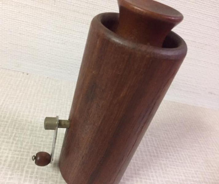 | ビンテージモダンコーヒーミル / 60-70年代 USA チークメイドのビンテージミル。トップのカバーを抜いて豆を入れサイドのハンドルをまわして挽きます。角を落とした丸みのあるやわらかなデザインフォルムとチークブラウンの落ち着いた雰囲気が良い感じ。。。ディスプレイにもおススメです! とてもシックでGOODなビンテージテーブルウェア! |