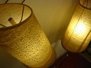 | アトミックモダンダブルシェードランプ / 50年代 マジェスティックランプのようなファイバーグラスのツインシェードにメタル&ウッドのアトミックデコレーション。 電源は普通のコンセント対応コード使用で、スイッチはベースに付いていてロータリー式(右・左・両方・OFF)です。 |