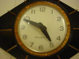 ELECTRIC, MADE IN USA. ダイヤデザインでブラックベースにゴールドのスターバーストアクセントカラーのアトミックな壁掛け時計です。 ムーブメントはバッテリー式(単3x1コ使用)に交換済ですから時間も正確です。 |