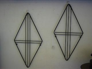 | ペア デコレーションワイヤーマウント / 50年代 ダイヤデザインのウォールデコレーションベースです。写真のように壁掛けなどのデコレーションに最適。お持ちの壁飾りなどをさらにかっこよくしてみては? ※写真のハーレクインは含みません。ワイヤーベースのみの販売です。 |
