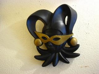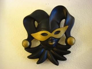 | ペアハーレクインフェイス壁掛け / USA. チョーク素材のハーレクインペアです。ブラックベースにゴールドマスク&アクセント。 |