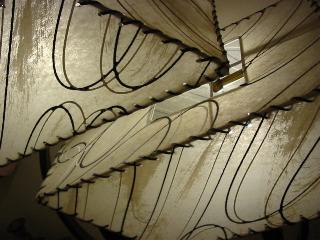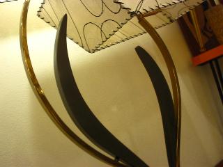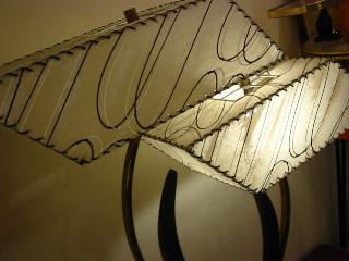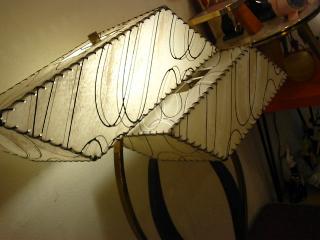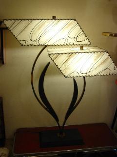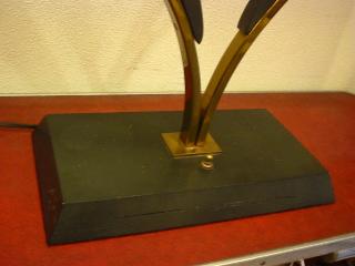 | マジェスティック シェードランプ / 50年代 ダブルスクエアシェードのマジェスティックランプ。ブラックウッドベース、アームはゴールドブラスにブラックウッドの向き合ったブーメランデコレーション。電源は家庭用コンセント対応コード、スイッチはベースに付いていてロータリー式。 |