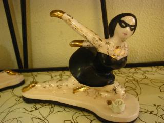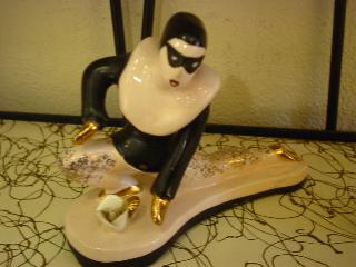 | ハーレクイン置物 / 50年代 ブーメラン型ベースのペアハーレクインです。陶器製でカラーは珍しい薄ピンクベース。 |