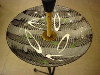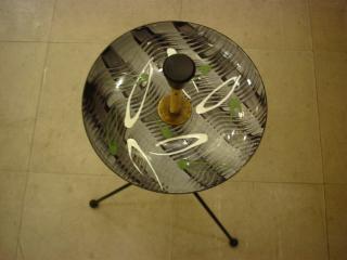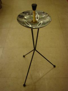 | アトミックフロアアッシュトレイ / 50年代. ブラックワイヤーのスタンドにエナメルウェアの灰皿。絵柄がアトミックでクールなフロアアッシュトレイです。倒れても割れたりしないので安心して使えます。 |