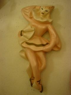 | ハーレクイン壁掛けペア / 60年代 ミラースタジオ社 ペアのチョーク製ハーレクインウォールデコ。ベビーピンクとアイボリーのグラデーションカラー。 |