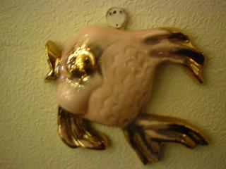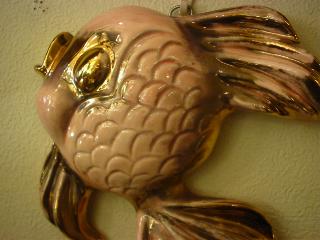 | セラミックフィッシュ&バブルセット壁掛け / 50年代 陶器製のファミリーフィッシュウォールデコ。 ピンクにゴールドアクセントがキュートです。 |
