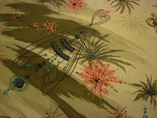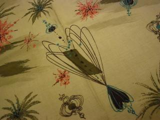 | アトミックスターバーストカーテン / 50年代. ビンテージカーテンです。色はダークアイボリーのグラウンドベースカラーにカーキ・ピンク・グレー・ブルーなどのアトミックスターバーストプリント。カーテンプリーツなしでパイプなどロッド状のものを通すタイプになっていますので幅広い用途!素材はコットンです。 |