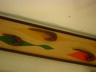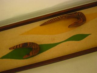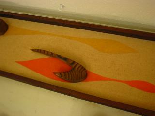 | ビンテージモダンウォールデコ / 50年代 ウッドフレームにペイントされたキャンバス地とウッドデコレーションのBigモダンアート。 |