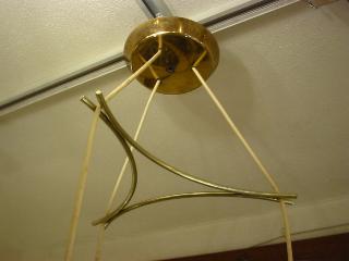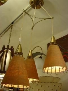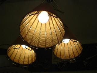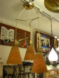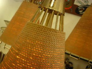 | アトミックモダン3シェードペンダントランプ / 50-60年代 ミッドセンチュリーの定番ともいえるスポット型の3シェードのオールインワンシーリングタイプ。それぞれのランプ本体はワイヤーフレームにロープ状のカバーシェード。電源は引っ掛けシーリングに交換済みですのですぐに設置可能です。 ※高さはご希望に合わせてある程度調節可能ですのでお気軽にお問い合せください。 |